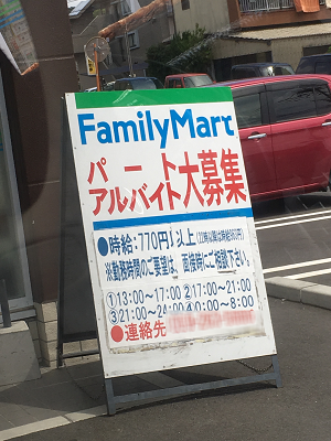 立ち寄ったコンビニエンスストアの出入り口付近にパート・アルバイトの募集看板が設置されているのを見かけたのですが、掲載されている時給が【770円】だったことにビックリ!